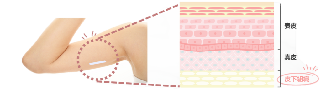 基本的に、利き腕ではない方の二の腕の皮下に挿入します。局所麻酔注射の際に針の刺入によるの痛みが一瞬生じますが、麻酔が十分効いた状態で挿入するため、挿入時の痛みは感じません。